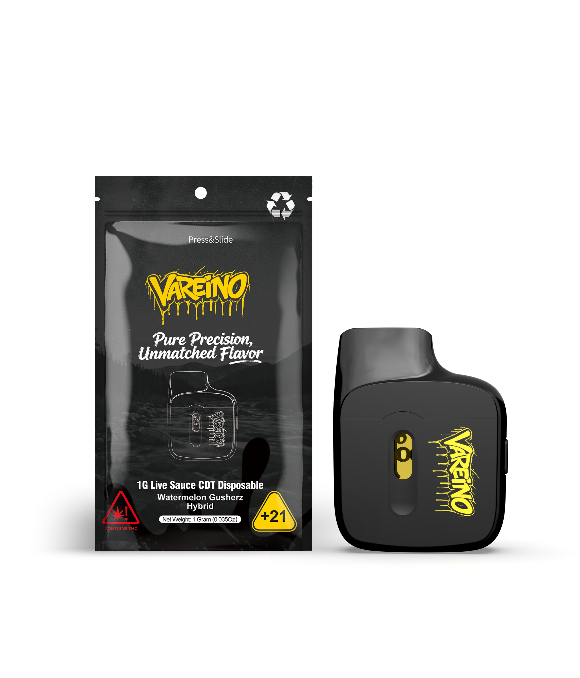 Experience the pinnacle of cannabis craftsmanship with the VAREINO 1G Live Sauce CDT Disposable—a sleek, all-in-one vape engineered for purity, potency, and performance. Each device delivers 1 gram of premium Live Sauce extracted using our proprietary CDT (Cannabis-Derived Terpenes) process, preserving the full-spectrum essence of the strain from fresh-frozen flower.